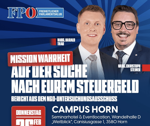 Gemeinsam mit unseren Nationalratsabgeordneten Christoph Steiner und Harald Thau erwartet dich ein spannender Abend mit Information, Austausch und klaren Worten.