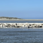 Mit einem Motorschiff geht es hinaus durch den gefluteten Nationalpark-Wattenmeer, vorbei an der Insel Wangerooge, bis wir den streng geschützten Osten der Insel Spiekeroog erreichen. Was zu Fuß nie möglich wäre, bekommen wir auf dieser Tour zu sehen: Die Seehunde und Kegelrobben ganz nah und ganz friedlich. Durch das Fahrmanöver des Schiffes werden die Tiere nicht gestört. Neben dem einzigartigen Anblick wird die Tour durch eine Biologin und Zertifizierte Natur und Landschaftsführende des Nationalpark-Hauses Carolinensiel begleitet, die über allerlei Wissenswertes zu den Marinen Säugetieren, Seefahrt und der Region aufklärt.