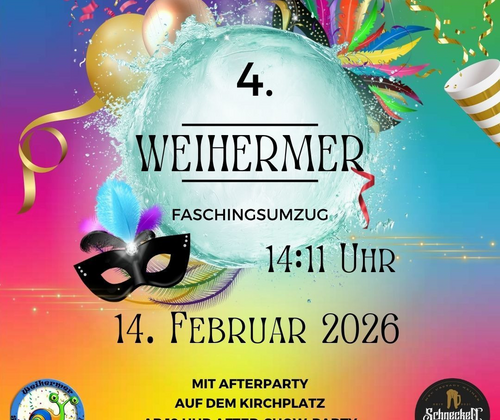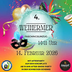 Der 4. Weihermer Faschingsumzug steht bevor! Gemeinsam feiern, tanzen und genießen – mit Speis & Trank von der Schnecken Schenke und neu dabei: Langos von Dorinas Langos. Kirchplatz glasfrei! Aftershowparty ab 19 Uhr. Unser 4. Weihermer Faschingsumzug steht in den Startlöchern. Wir freuen uns wieder, mit Euch gemeinsam zu feiern und durch die Straßen zu tanzen. Unterstützt werden wir auch dieses Jahr wieder von der Schnecken Schenke. Wie in den vergangenen Jahren auch, sorgen sie mit uns gemeinsam für Speis und Trank. Dieses Jahr neu mit dabei: leckere Langos von Dorinas Langos. Wichtige Info am Rande: Die Veranstaltung auf dem Kirchplatz findet dieses Jahr GLASFREI statt, deshalb bitten wir ALLE Gäste, ihre Flaschen zuhause zu lassen und die Teilnehmer, die Flaschen sicher in ihren Wägen aufzubewahren. Vielen Dank für Eure Unterstützung! Im Anschluss findet, wie jedes Jahr, ab 19:00 Uhr die Aftershowparty in der Schnecken Schenke statt. Eure Weihermer Schneckenschleimer