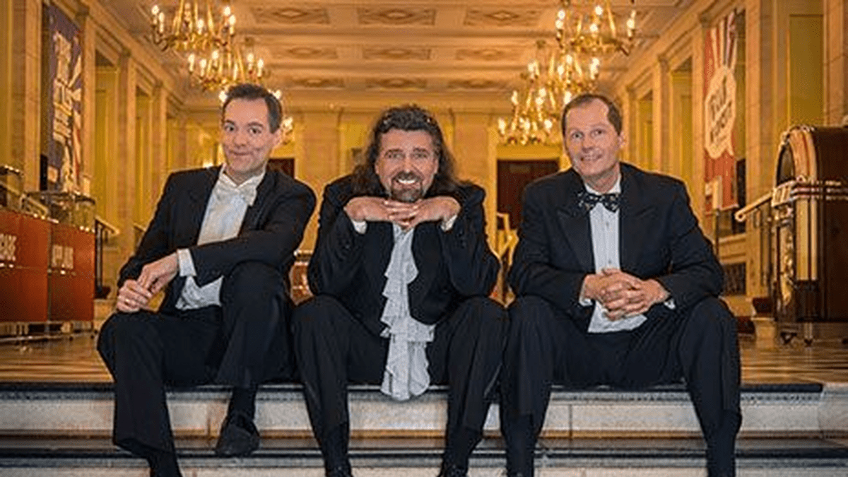 „ REICH ABER GLÜCKLICH - 3 TENÖRE AUF REISEN“ Die HauptstadtTenöre und den Solisten Maik Tödter, Björn Christian Kuhn und Thorsten Hennig begleitet am Flügel von Ronald Herold Das szenische Konzert "Reich aber glücklich - 3 Tenöre auf Reisen" mit Musik aus Operette, Oper und Filmschlagern, erzählt was passiert, wenn drei Tenöre zusammen auf Konzertreise gehen und die Freundin zu Hause bleibt. Björn Kuhn, Maik Tödter und Thorsten Hennig interpretieren die Musik mit viel Humor und Individualität und überraschen mit einem Finale bei dem kein Auge trocken bleibt. Gute Laune ist garantiert, versprochen! Rasant, bunt und voller Überraschungen - so wie die Hauptstadt sind die eigenen außergewöhnlichen Arrangements der drei Tenöre. Sie verstehen sich hervorragend auf augenzwinkernden Witz und direktem Humor, mit dem sie dem Publikum Evergreens wie "Untern Linden", "Dein ist mein ganzes Herz" und "Mein kleiner grüner Kaktus" elegant ins Ohr setzen. Sie bieten Berliner Vielfalt, die keine Sperrstunde kennt. In ihren Konzerten begeistern Die HauptstadtTenöre ihre Zuschauer mit Vitalität und Dynamik und bringen ihnen so das Lebensgefühl der sprichwörtlichen Berliner Luft näher. Ein großer Teil ihrer Anziehungskraft sind klassische Opernarien wie Giacomo Puccini's "Nessun dorma" aus der Oper Turandot, dargeboten mit einzigartigen und ausdrucksstarken Stimmen. Dufte Jungs im schwarzen Frack, aber alles andere, als Kinder von Traurigkeit!