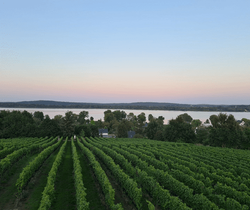 "Kunst im Weinberg" ist das Motto. Bei einem Gläschen Wein und angebotenen Speisen können Besucher zwischen Weinreben Kunstwerke bestaunen.
