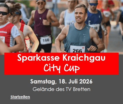 Brettener Stadtlauf mit verschiedenen Laufangeboten für Groß und Klein, Schülerläufe, 5km und 10km Lauf, Staffelläufe sowie den Ultralauf von 52 km (auch als Staffel möglich). Der Sparkasse Kraichgau City Cup ist seit 2004 ein beliebter Lauf, der viele Läufer aus dem Umkreis anlockt. Gelaufen wird durch die schöne Altstadt mit ihren Gassen und über den Marktplatz mit seinen Fachwerkhäusern. Neben drei Schülerläufen gibt es einen 5 km und einen 10 km Lauf. Auch Firmen, Vereine und andere Gruppen finden mit der 4 x 2,5 km Staffel ihren Lauf. Der Ultralauf über 52 km führt durch den schönen Kraichgau mit seiner tollen Hügellandschaft. Auf dem TV-Platz findet in diesen Rahmen das Sommerfest des Vereins mit Bewirtung und Musik statt.