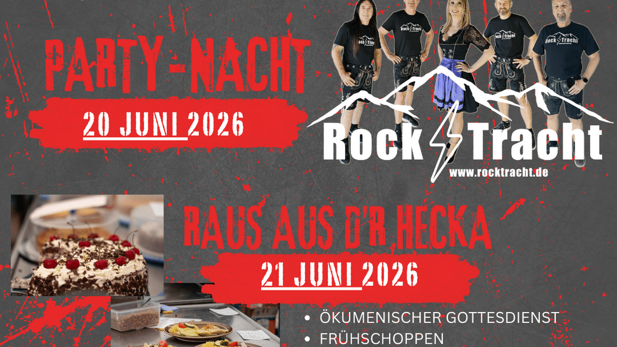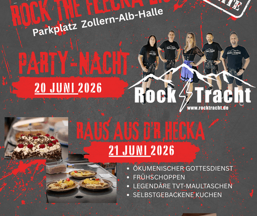 Am 20. Juni 2026 lassen wir den Flecka rocken. Die Volksrock Partyband RockTracht bestehend aus 5 erfahrenen Musikern brennen dafür die Festbesucher von jung bis alt in einer atemberaubenden Volksrock-Show zum Abfeiern zu bringen.