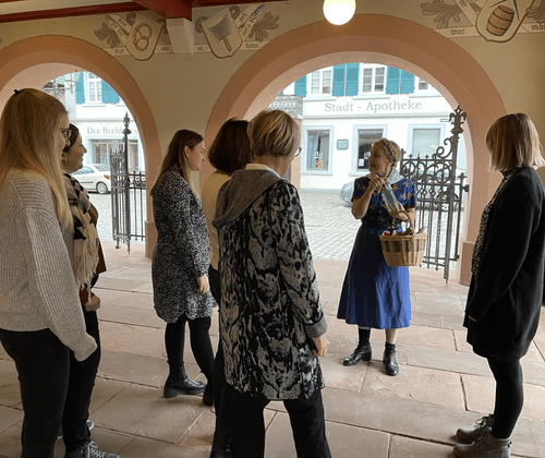 Die Führung für Jedermann mit Stadtführerin Billy Sum-Herrmann findet in der Reihe DORT statt. Haslach ist eine alte Marktstadt und hat heute noch 100 Markttage aufzuweisen. Erleben Sie eine „echte Marktbäuerin, das Buttermariele“, die als Bäuerin auf dem Markt hier ihre Waren -vor allem natürlich besten Butter- feil bietet. Lernen Sie alles über Handel, Wandel und Gewinne im Haslach des 19. Jahrhunderts und vor allem wie es in einer alten Stadt so zugeht aus der Sicht der „Bäuerin vom Land“. Stadtführung Preis pro Erwachsener: 12 €, inkl. Kirschwässerle Anmeldungen bis zum Vortag 12.00 Uhr in der Tourist Information, Tel. 07832 / 706-172, erforderlich. Treffpunkt: 18.00 Uhr bei der Tourist Information am Alten Kapuzinerkloster