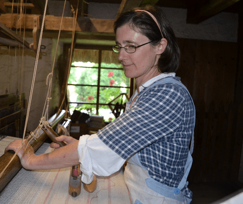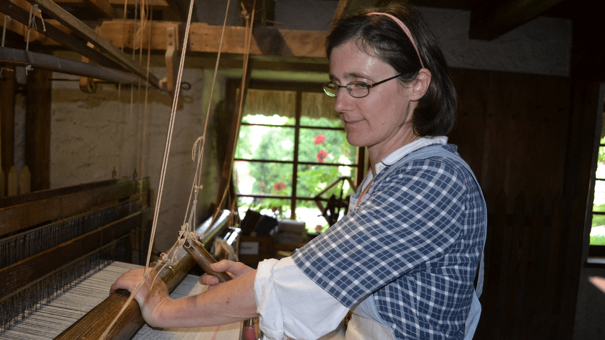 Handwerksvorführung: Weben am Webstuhl Handwerksvorführung: Weberin Die Weberin Gabriela Martin lässt sich bei ihrer Arbeit gerne über die Schultern schauen.