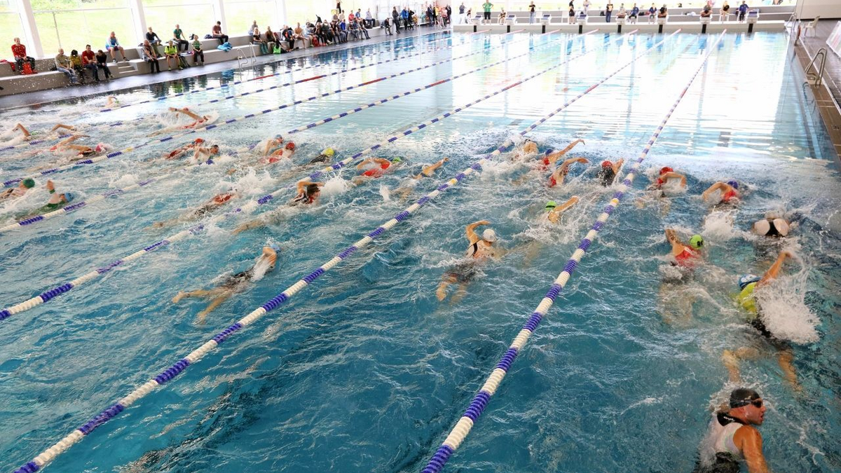 Einzel-, Staffel- und Firmenwettbewerbe aller Altersklassen und Distanzen  Start und Ziel: Glück Auf Schwimmhalle, Tonstraße 5