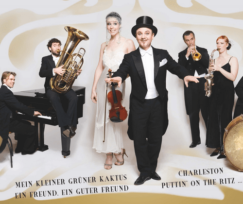 Musikalische Revue aus Berlin Das Tanzorchester aus dem Hotel Adlon mit Frack, Charme und Zylinder. Die Zwanziger Jahre werden golden genannt. Sie stehen für eine Zeit, in der alles schon mal da war: Massenmedien, Tanzvergnügen, Ohrwürmer, Finanzkrise (in der Reihenfolge) - alles wie heute, nur besser und: Zum ersten Mal! Die beste Unterhaltungsmusik aller Zeiten entsprang der Feder von Grothe, Holländer und den Kollos diesseits und Gershwin und Whiteman jenseits des großen Teichs. Und Andreas Holzmann und das CASANOVA SOCIETY ORCHESTRA holen sie zurück. Mit allem was die Musik schon damals vergoldet hat: Vielseitige Arrangements, virtuose musikalische Fernreisen und komisch bis melancholische Texte. Was waren die Zwanziger? Was sind sie für uns heute? Antworten auf diese Fragen liegen zwischen den Zeilen von Liedern wie "Veronika, der Lenz ist da", "Mein kleiner grüner Kaktus" oder "Puttin on the Ritz". Oder die Interpreten dieser Evergreens machen sich im Hier und Jetzt ihren ganz eigenen Reim darauf: Während Andreas Holzmann als charmanter Chef nicht nur den Hut auf, sondern auch den Frack an hat brilliert an der Geige Sonja Firker . Als moderne Frau hat sie allerdings ganz andere Ansichten über das Erobern und erobert Werden als er. Dass sie ebenfalls sehr gerne singt, und er ausgerechnet des Violinspiels mächtig ist, lässt im weiteren Verlauf unter Kollegen noch ganz andere Fragen in den Vordergrund treten, zum Beispiel die, wer hier eigentlich die erste Geige spielt. Apropos Kollegen: Einfühlsam und stilsicher begeistert das CASANOVA SOCIETY ORCHESTRA mit Tango, Paso Doble, Rumba, Foxtrot und Walzer in perfekt auf die Besetzung zugeschnittenen Arrangements und spektakulären Insrumentenwechseln im Stil der Weintraub Syncopaters. Die durchweg exzellenten Musiker können und wollen weit mehr als nur begleiten, so präsentiert das CASANOVA SOCIETY ORCHESTRA mit jodelndem Gesangstrio und einer Comedian Harmonists Einlage noch viele andere geniale Überraschungen.