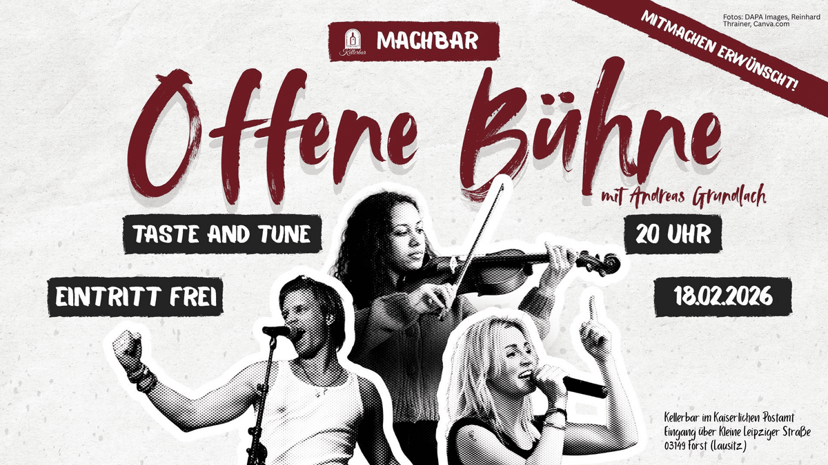 Mit „Taste and Tune“ starten eine neue Reihe für alle, die Musik fühlen, Kunst lieben oder einfach gern in guter Atmosphäre Menschen treffen. Offene Bühne mit Andreas Gundlach – Musiker, Multiinstrumentalist, bekannt aus der Gregor Meyle Band und ein echter Freigeist am Klavier. Ob du selbst auftrittst oder nur die Ohren spitzt: Alles kann, nichts muss. Du willst einen eigenen Song spielen? Ein Gedicht vortragen? Eine spontane Jam-Session starten? Dann ist das deine Bühne. Oder du bleibst einfach im Publikum, nippst an einem Drink - und genießt den kreativen Flow. Kein Stress, kein Zwang, kein falscher Ton: “Taste and Tune” ist ein Abend zum Ausprobieren, Zuhören, Genießen und Inspirieren lassen. Egal ob du zum ersten Mal mitmachst oder schon auf der Bühne zu Hause bist – hier zählt nicht Perfektion, sondern Persönlichkeit und Spielfreude. Kommen. Lauschen. Mitmachen. Die Kellerbar im Kaiserlichen Postamt öffnet ihre Tür für alle kreativen Seelen – und die, die es noch werden wollen. Ein Abend von vielen im Rahmen der Reihe „Machbar“
