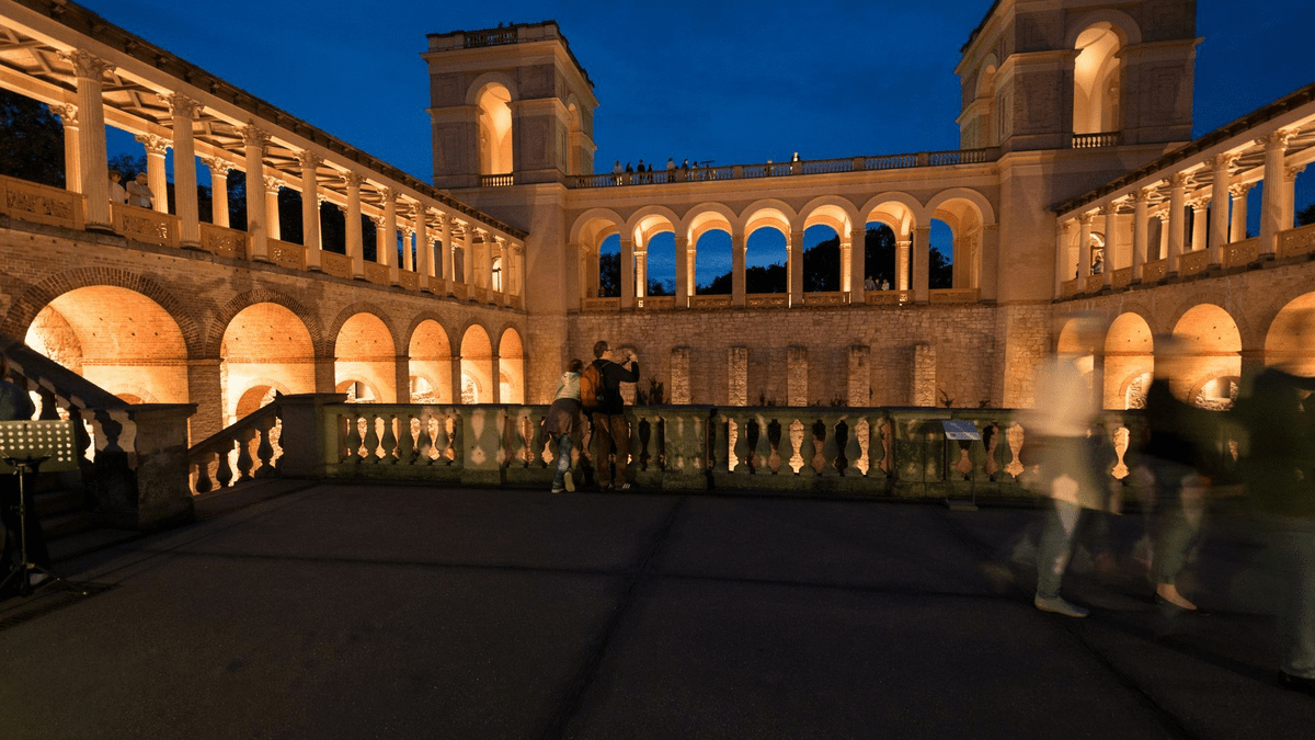 Wenn die Sonne über dem Schloss Belvedere untergeht und der Vollmond erscheint, ist das ein Fest für die Sinne. Die italienische Architektur des Königs Friedrich Wilhelm IV. wird in warmes Abendlicht getaucht, und wenn der Mond sich im Wasserbecken spiegelt, drehen Fledermäuse leise ihre Runden. Wird es dunkler, werden Schlossinnenhof, Säulengänge und Arkaden stimmungsvoll illuminiert. Von den Schlosstürmen lassen sich das abendliche Potsdam, die Havelseen und der sich füllende Sternenhimmel erleben. Special Guest: In dieser Mondnacht tauchen wir in die zauberhafte Welt der jüdischen Märchen ein. Doris Rauschert präsentiert Geschichten voller Humor, Weisheit und Spiritualität, die eng mit den heiligen Texten der Tora und dem Talmud verknüpft sind. Uns begegnen weise Rabbiner, barmherzige Menschen, magische Tierwesen und Gestalten aus der jiddischen und chassidischen Folklore. Die Erzählungen werden traditionell musikalisch untermalt. Die Mitglieder des Förderverein Pfingstberg bieten Getränke an und auch für das leibliche Wohl ist gesorgt – bei angenehmer Musik ist das der perfekte Wochenausklang!