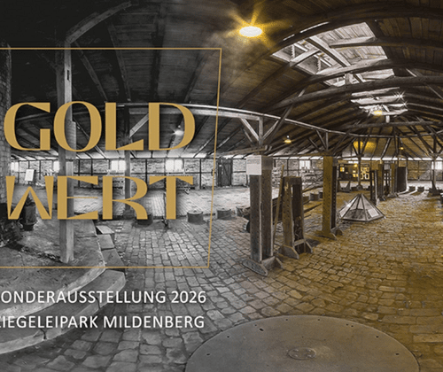 Der Ziegeleipark ist ein einzigartiges Ensemble industrieller Baukultur – jeder Ofen, jede Halle erzählt von Arbeit, Technik und Wandel. Im Mittelpunkt: der Ringofen IV, derzeit aufwendig restauriert. Zwischen Ziegelstaub und Denkmalschutz entsteht GOLDWERT - eine Ausstellung über das, was Mauern erzählen. Sie fragt nach dem Wert des Bewahrens: materiell, immateriell, ideell - und für uns heute. Zu sehen in der Kugelmühle.