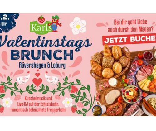 Verbringe den Valentinstag bei Karls in Loburg – mit deiner Familie, Freunden oder deinen Lieblingsmenschen! Am 14. Februar 2026 erwartet dich von 9 bis 13 Uhr ein vielfältiges Brunchbuffet in der liebevoll geschmückten Festscheune. Genieße frisch Gebackenes aus der Hof-Bäckerei, herzhafte warme und kalte Spezialitäten, süße Leckereien, frisches Obst und knackige Snacks. Dazu gibt es prickelnden Erdbeer-Secco. Sichere dir deine Tickets ganz bequem über die Karls-App – die Plätze sind begrenzt! Ein perfekter Moment, um gemeinsam einen entspannten und genussvollen Tag mit deinen Lieben zu verbringen. PS: Denk schon jetzt an Frauentag, Mutter- und Vatertag sowie Ostern und reserviere rechtzeitig deine Tickets für den Brunch bei Karls in Loburg. Weitere Informationen: Weitere Informationen