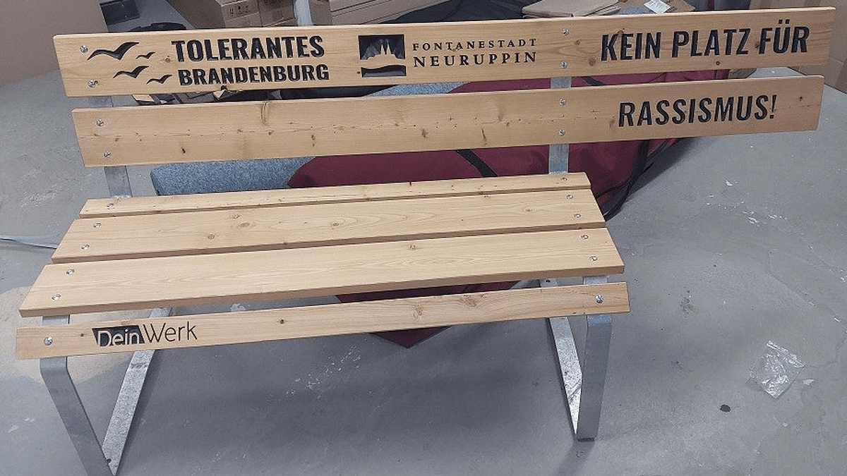 Die Fontanestadt Neuruppin engagiert sich gegen Rassismus und setzt sich für ein tolerantes und weltoffenes Neuruppin ein. Um diese Einstellung präsenter zu zeigen und ein Zeichen gegen Rassisimus und für Toleranz zu setzen, wurden im Jahr 2024, im Rahmen des Jubiläums zum 75. Geburtstag des Grundgesetzes, zwei sogenannte "Toleranzbänke" über die Koordinierungsstelle "Tolerantes Brandenburg" der Staatskanzlei des Landes Brandenburg angefragt. Die Bänke haben eine Rückenlehne von circa zwei Metern, aber nur eine Sitzfläche von eineinhalb Metern, wobei die fehlende Sitzfläche auf der rechten Seite das Motto „Kein Platz für Rassismus“ symbolisiert. Die Herstellungskosten sind für die Fontanestadt Neuruppin kostenneutral, da diese über die Koordinierungsstelle „Tolerantes Brandenburg“ getragen wurden. Die Herstellung, samt Beschriftung an der Rückenlehne mit dem Logo der Fontanestadt, wurde über eine inklusive Werkstatt ausgeführt. Unter dem Motto „Kein Platz für Rassismus“ engagiert sich die Koordinierungsstelle „Tolerantes Brandenburg“ landesweit für den Aufbau dieser Bänke und setzt sich damit für Vielfalt und gegen Rassismus ein. Diesem Ansinnen soll mit den zwei "Toleranzbänken" öffentlich Ausdruck verliehen werden.