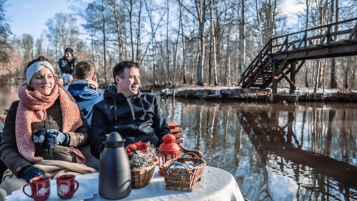 Eine winterliche Kahnfahrt in den Spreewald vom Hafen "Am Holzgraben". (ca. 75 minütige Kahnfahrt). Bitte beachten: Sollten die Fließe an besagten Tag gefroren sein, kann die Fahrt nicht stattfinden.