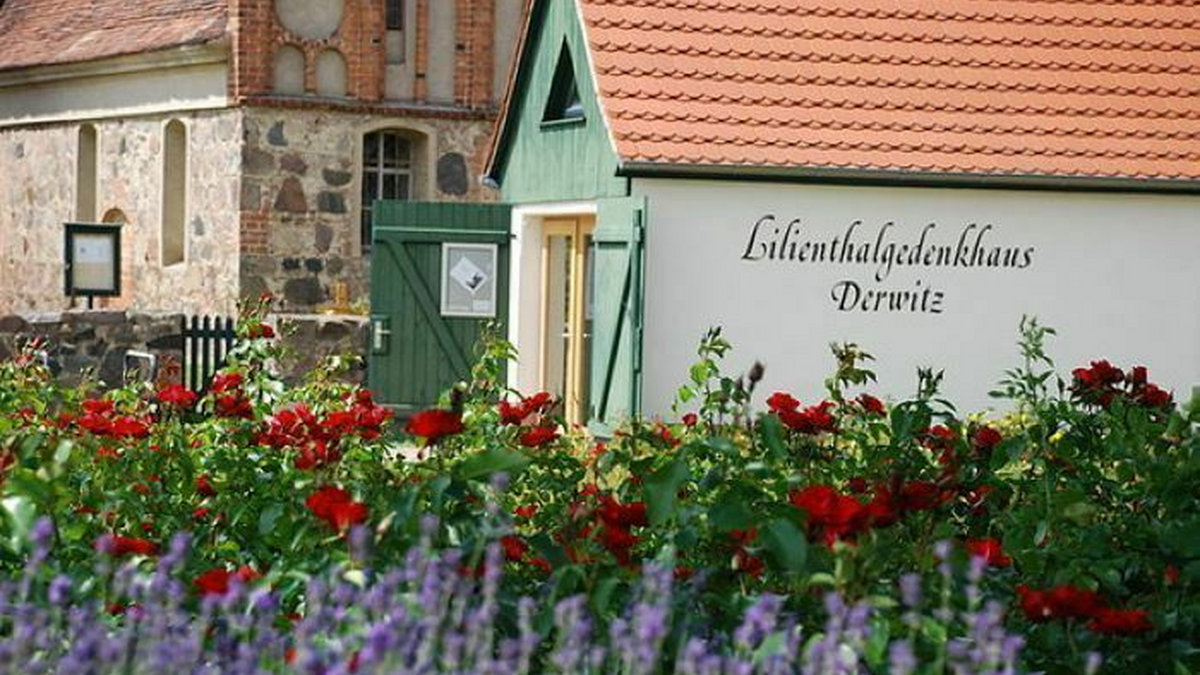 Mit dem Lilienthalgedenkhaus in unmittelbarer Nähe zum „ersten Flugplatzder Welt" werden die Pionierleistungen Otto Lilienthals gewürdigt. Ihm gelangen 1891 die ersten Gleitflüge über 25 Meter am Spitzen Berg inDerwitz / Krielow. Das Jahr 1891 gilt als das Jahr der ersten Segelflüge in der Geschichte der Fliegerei. Das kleine Museum befindet sich im Ortskern neben der Derwitzer Dorfkirche mit ihrem spätgotischen Blendengiebel und ist eine Station auf dem Panoramaradweg in Werder (Havel). Der Besuch des Gedenkhauses sollte unbedingt mit einem Spaziergang zum Lilienthaldenkmal auf dem Mühlenberg Derwitz / Krielow verbunden werden. • Öffnung des Gedenkhauses • Kaffee und Kuchen sowie gegrillte Bratwürste • Führungen in der Derwitzer Dorfkirche mit Ausführungen zum Totenkronen-Brauch als Denkmale der Liebe • Fackelzug der Kinder aus dem Dorf Weitere Informationen: komplettes Programm des Aktionstages im Reisegebiet Havelland Film zum Aktionstag
