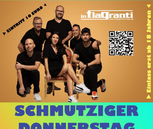 Am Schmutzigen Donnerstag bringt die sechsköpfige Coverband INFLAGRANTI die Mehrzweckhalle Weiher zum Beben. Live gespielte Partyhits, Rock- & Popklassiker aus 40 Jahren und aktuelle Chartkracher – perfekt zum Tanzen und Mitsingen. Auch in diesem Jahr sorgt eine der besten Partybands Süddeutschlands, die Coverband „INFLAGRANTI “, am Schmutzigen Donnerstag auf der Bühne in der Mehrzweckhalle Weiher für Stimmung. Angesagte Partyhits und Klassiker aus über 40 Jahren Rock- und Popgeschichte wechseln sich ab mit topaktuellen Chartkrachern, die stets LIVE interpretiert werden. Ob Hardrock von Bon Jovi oder AC/DC, Elektro-Pop von Glasperlenspiel, Dancefloor von Lady Gaga, NDW von Peter Schilling oder Nena, Malle-Hits von Mickie Krause oder Rock von Sunrise Avenue oder P!nk, wer Lust zum Tanzen und Mitsingen hat und sich von einer außergewöhnlichen Songauswahl verschiedener Stilrichtungen überraschen lassen möchte, ist beim Schmutzigen Donnerstag des Musikvereins Weiher dann mit der sechsköpfigen Band „INFLAGRANTI“ genau richtig.