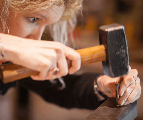 Handwerksvorführung: Goldschmiedin Handwerksvorführung: Goldschmiedin Die Goldschmiedin, Katharina Weber, weiht in die Kunst des Goldschmiedens ein.