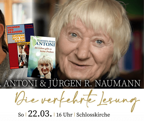 Am 22. März 2026 um 16 Uhr lädt die Schlosskirche zu einer besonderen Lesung unter dem Titel „Die verkehrte Lesung“ ein. Zwei bekannte Stimmen treffen aufeinander: Carmen-Maja Antoni liest „Drinnen und draußen ändern sich die Zeiten“, Jürgen R. Naumann liest „Im Leben gibt es keine Proben“. Unter dem Motto „Das Gleiche im Ungleichen“ begegnen sich zwei Lebensgeschichten, die unterschiedlicher kaum sein könnten – und doch erstaunlich viele Parallelen aufweisen. Mit Humor, Tiefgang und einem liebevollen Blick auf das Absurde erzählen beide von prägenden Momenten, überraschenden Begegnungen und kleinen Alltagswundern. Naumann berichtet, wie Carmen-Maja Antoni fürs Kinderfernsehen entdeckt wurde, wie sie Helene Weigel anrief, obwohl sie gar kein Telefon hatte, und plaudert aus ihrem Familiennähkästchen. Antoni hingegen nimmt das Publikum mit auf die turbulente Probe seiner Rockband, erzählt, wie sein Vater auf einem Zeltplatz in Kühlungsborn Wasser zum Kochen brachte, und erinnert sich an einen goldenen Rolls-Royce und köstliche Butterbrote. So entsteht eine unterhaltsame, warmherzige und manchmal wunderbar verdrehte Begegnung zweier Künstlerpersönlichkeiten – eine Lesung voller Anekdoten, Charme und augenzwinkernder Lebensweisheit.