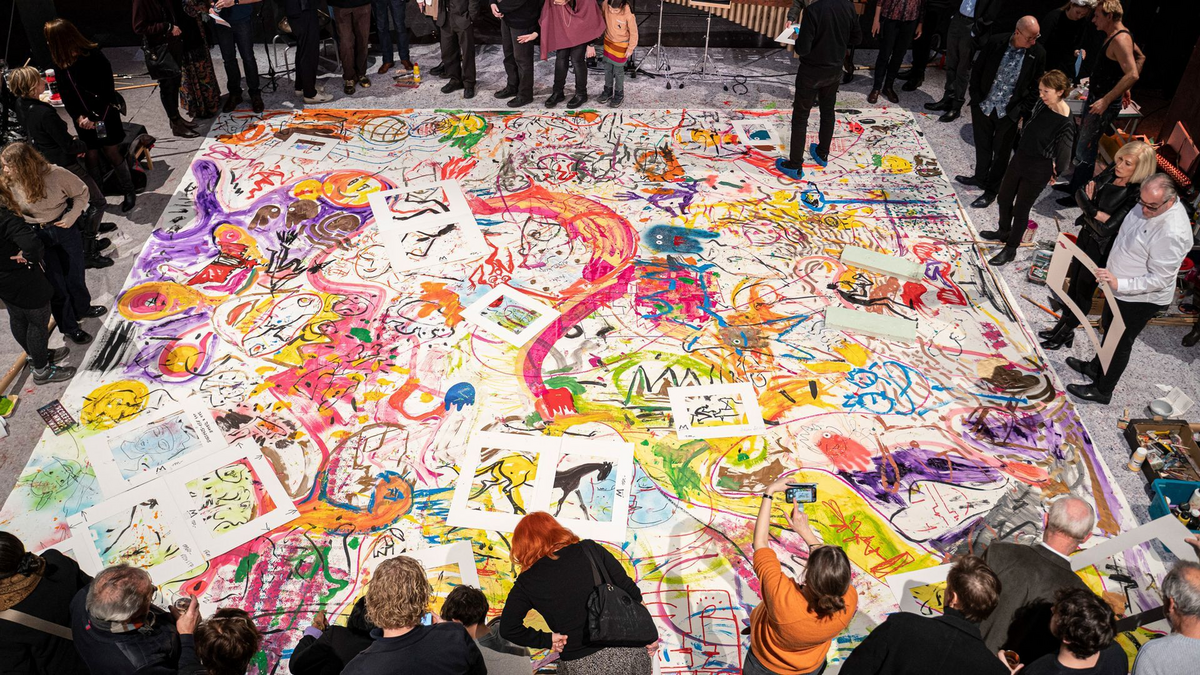 Mit Natalya Kovalenko, Kristine Narvida, Stephanie Pech, Susanne Ramolla und Miriam Vlaming (Malerei, Zeichnung, Collage etc.) Max Doehlemann Quintett: Max Doehlemann, Klavier Tilman Hussla, Violine Felix Thiemann, Violoncello Wolfram Spyra, Elektronik & Live-Sampling & Stahlcello Roksana Vikaluk, Vocal & Keyboards Das intergalaktische Kunst- und Musikhappening, inspiriert von Gustav Holsts »Planeten« Was sich sonst hinter geschlossenen Ateliertüren vollzieht, wird an diesem Abend zum öffentlichen Happening mit Livemusik. Die Spielfläche: ein Papierquadrat von 8 mal 8 Metern auf dem Fußboden des Nikolaisaal-Foyers. Mit den ersten »Planeten«-Klängen des Max Doehlemann Quintetts beginnt ein faszinierendes Spektakel, bei dem sich fünf Künstlerinnen unmittelbar von der Musik inspirieren lassen und vor aller Augen ein »kosmisches« Gemeinschaftswerk erschaffen. Ein lustvoll beflügelndes Match nicht nur zwischen Musik und Bildender Kunst, sondern auch zwischen den Akteurinnen und ihrem Publikum! In Zusammenarbeit mit dem KunstHaus Potsdam – Potsdamer Kunstverein Am 6. März um 20 Uhr findet an gleicher Stelle Teil 2 des Kunsthappenings statt, bei dem das Kunstwerk Stück für Stück verkauft wird. 50 % der Erlöse kommen der Initiative »Kultür Potsdam« zugute, die es Menschen mit geringen Einkünften ermöglicht, am vielfältigen kulturellen und gesellschaftlichen Leben der Stadt teilzunehmen.