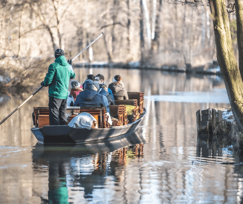 Eine Winterfahrt in den Spreewald vom Kleinen Hafen "Am Spreeschlösschen". (ca. 75 minütige Kahnfahrt). Bitte beachten: Sollten am besagten Tag die Fließe gefroren sein, kann die Fahrt nicht stattfinden!