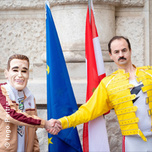 "Die Kombination der beiden hat enorme Kraft, weil sie vordergründig eine Gaudi ist, aber immer einen mit Gesellschaftskritik aufbereiteten Boden hat." Bernhard Flieher, Salzburger Nachrichten