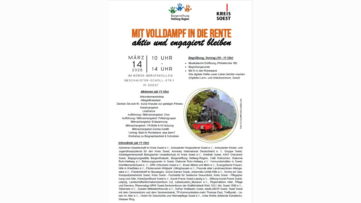 "Mit Volldampf in die Rente“ – Aktivmesse am 14. März 2026 0 Uhr