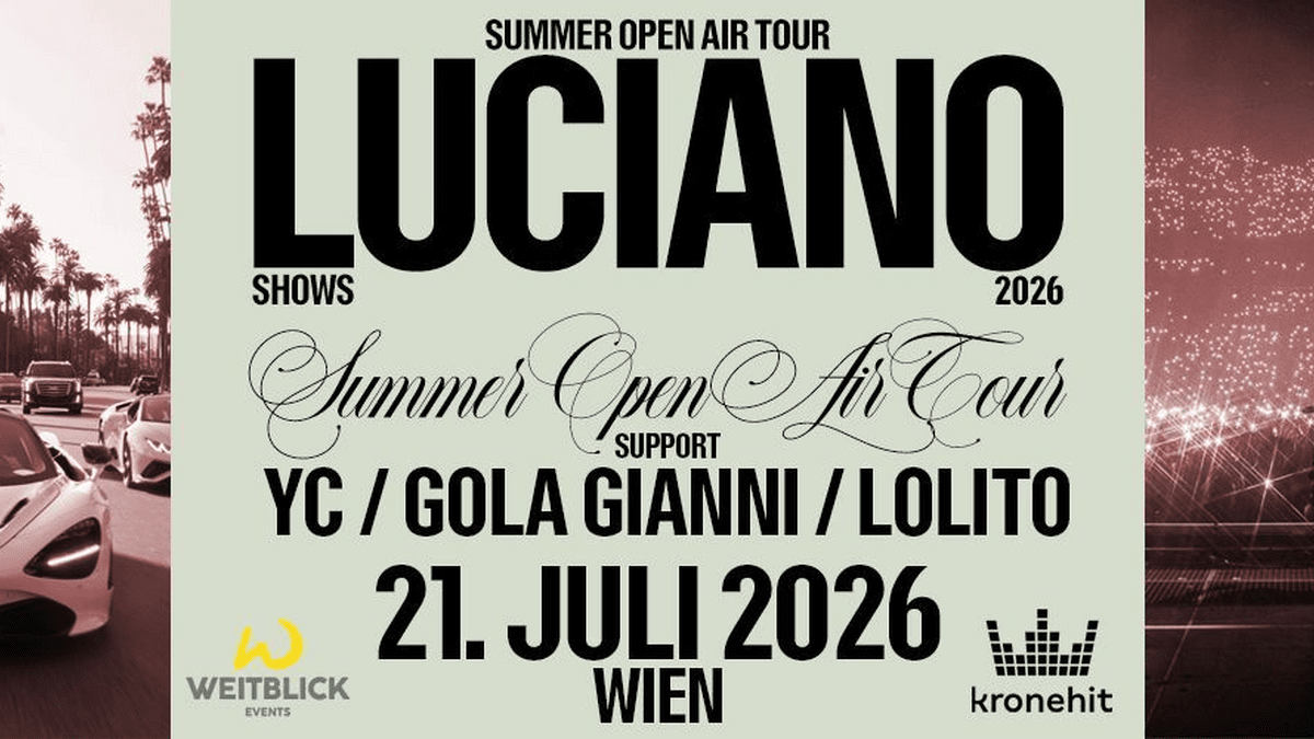Als meistgestreamter deutscher Künstler, Chart-Dominator und stilprägender Soundvisionär bringt Luciano seine größte Show nach Wien – mitten ins Herz des Sommers.