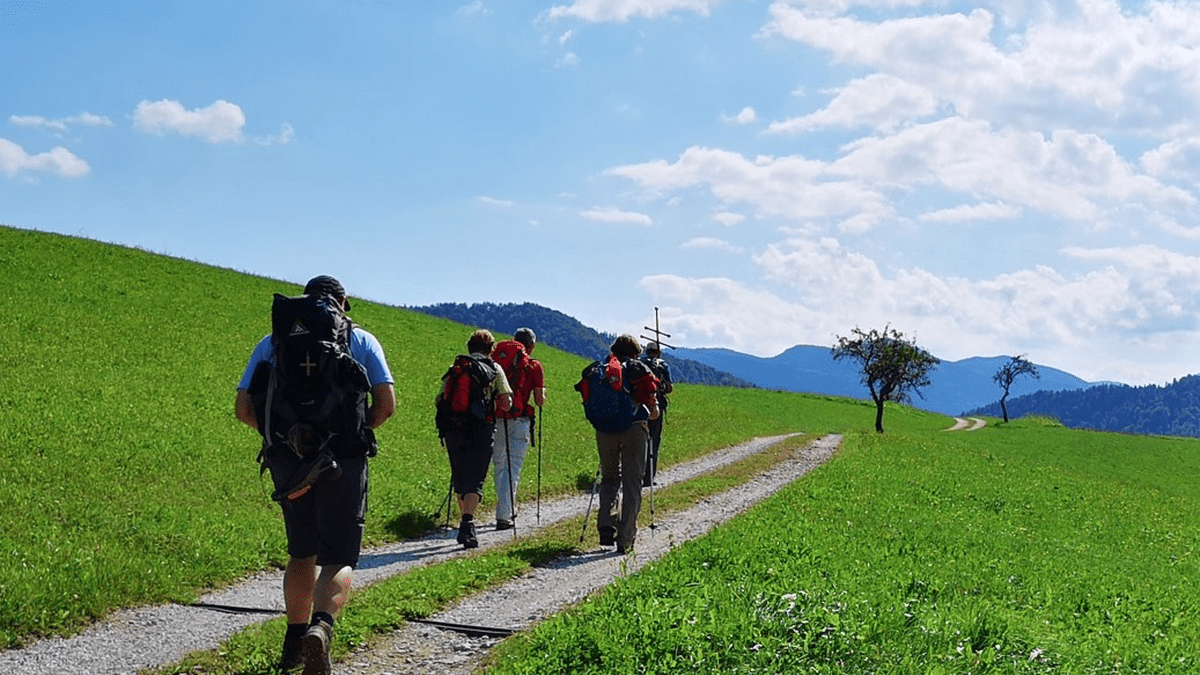 Wir werden entlang des neuen Pilgerweges namens „Benediktweg“