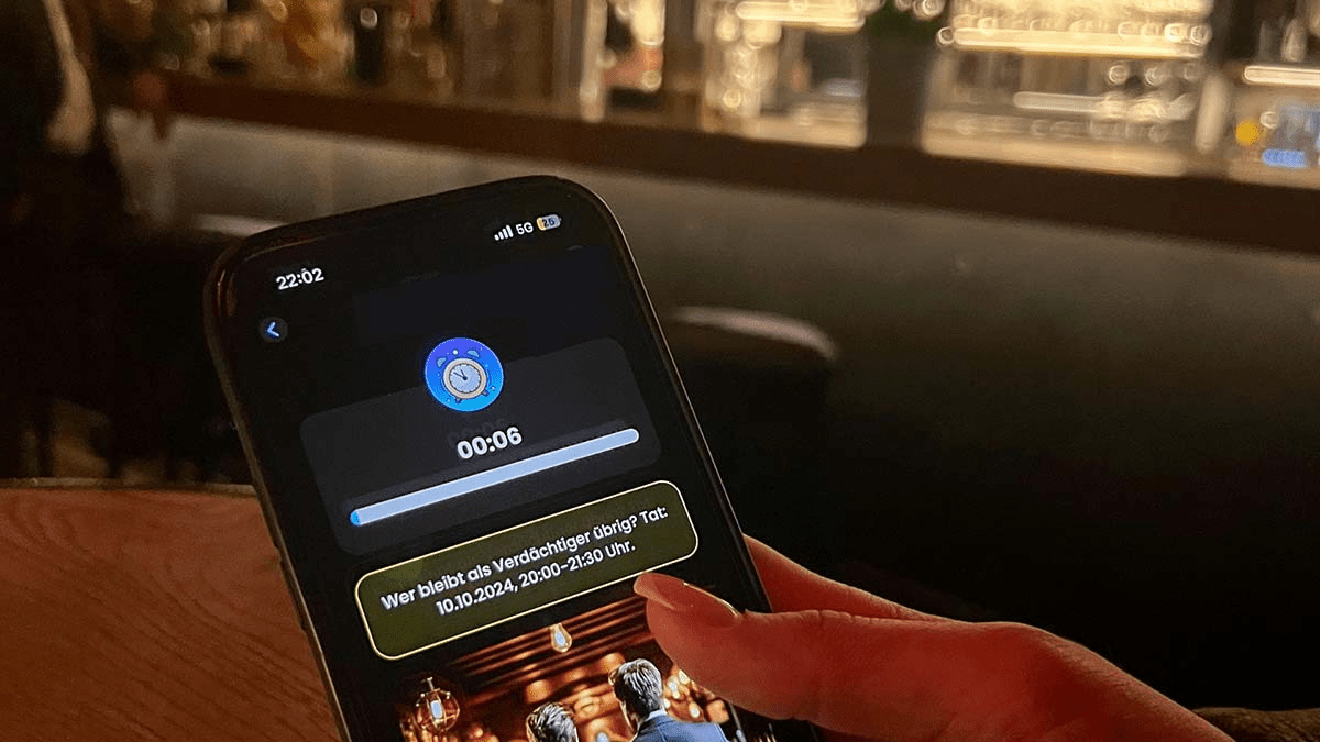 Mordsspaß beim Bar Escape Diese Bar-Rätseltour vereint spannendes Abenteuer mit stilvollem Barhopping und fordert deinen Spürsinn auf neue Art heraus. Ausgestattet mit einer App erkundest du die Stadt, entdeckst verborgene Hinweise und löst nach und nach einen geheimnisvollen Fall. In vier ausgewählten Bars erwarten dich nicht nur besondere Drinks und eine einzigartige Atmosphäre, sondern auch knifflige Aufgaben. Beim Bar Escape Game kombinierst du geschickt, meisterst überraschende Wendungen und spürst, wie die Spannung mit jeder Station wächst. Zwischen kreativen Getränken und abwechslungsreichen Herausforderungen wird der Teamgeist gestärkt, während deine Neugier dich immer weiter antreibt. Diese besondere Barhopping-Rätseltour ist ideal für alle, die etwas Neues erleben und sich einer Herausforderung stellen möchten. Starte dein interaktives Abenteuer und werde selbst zum Ermittler der Nacht. Inhalt App-geführte Rätseltour durch vier besondere Bars Spannender Kriminalfall mit interaktiven Rätseln Überraschung auf der Strecke Teilnehmer Gutschein gültig für 8 Person Gruppengröße: 1-8 Personen Dauer Ca. 2,5 Stunden Ausrüstung & Kleidung Mitzubringen: mind. ein geladenes Smartphone (am besten ein Smartphone pro Spieler), Powerbank (falls nötig), der Spielcode aus der Erlebnisbestätigung Wird gestellt: Escape This!-App kostenlos zum Download Teilnahmebedingungen Mindestalter: 16 Jahre Teilnahme für Personen mit Handicap nach Absprache mit dem Veranstalter möglich