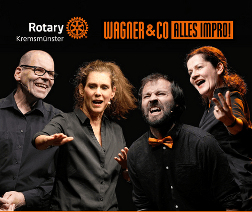 Der Rotary Club Kremsmünster veranstaltet abermals eine Charity-Veranstaltung im Theatersaal des Stiftes Kremsmünster. Der Pianist und Komponist David Wagner unternimmt mit seinen Impro-Theaterdarstellerinnen und -darstellern einen "Frontalangriff auf die Lachmuskeln" (OÖN). Dabei wird das Publikum aktiv einbezogen und bestimmt durch Vorgaben den Verlauf der Szenen. Damit wird jede Show zum einzigartigen Erlebnis. Die Produktion von Wagner & Co verbindet virtuose Musik mit rasanter Impro-Comedy. Wie der Titel schon sagt: "Sie werden sich wundern ..."!Kartenvorverkauf: