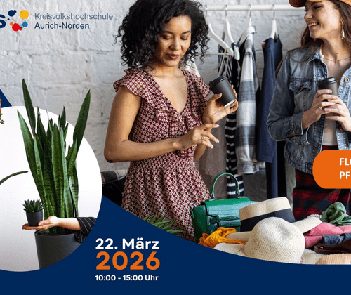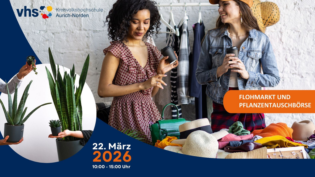 Beim Flohmarkt mit Pflanzentauschbörse können Sie gut Erhaltenes verkaufen, neue Schätze entdecken und Ihre Pflanzensammlung weiterentwickeln. Die Pflanzentauschbörse bietet die Möglichkeit, eigene Pflanzen, Stecklinge oder Samen mitzubringen und gegen andere Pflanzen einzutauschen - ganz unkompliziert und nachhaltig. Ein neuer Look für's Wohnzimmergrün! Der Flohmarkt bietet alten Schätzen ein neues Zuhause - ob Bücher, Kleidung oder Haushaltsartikel. Wer selbst etwas zum Verkauf anbieten möchte, kann sich bis zum 27. Februar 2026 mit einem Stand unter Angabe der Kursnummer telefonisch (04941/9580-0) anmelden - Standgebühr 5,00 € / Meter. Wer neues Altes sucht, wird hier sicher fündig!
