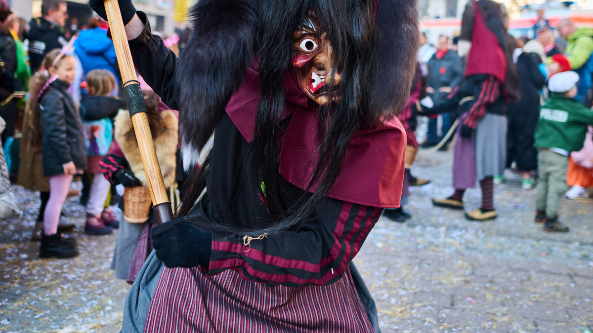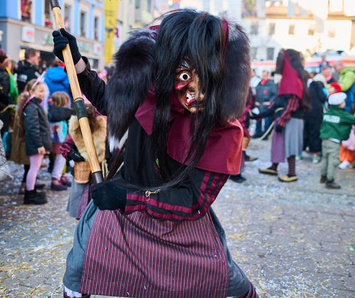 Großer Traditioneller Umzu Schramberg Am Fasnetsmontag werden den Narren keine großen Pausen gegönnt: Nachdem morgens und vormittags schon Katzenmusik und Zuberumzug für Trubel in der Stadt gesorgt haben und danach mit der Bach-na-Fahrt zehntausende feiernde Besucher den Bach säumten, geht es quasi nahtlos weiter mit dem großen Straßenumzug durch Schramberg. Die Narren- und Hexenzünften aus dem Raum Schramberg springen dann vom Schloss bis zum “Rosengarten” durch die Innenstadt und verteilen allerlei Leckereien an die Besucher - die ihrerseits aber auch manch Konfetti- oder Strohwürfen auszuweichen versuchen. Mit dabei sind ebenfalls Kindergärten, die Stadtmusik oder Bürgervereinigungen - ein Höhepunkt sind natürlich die großen Umzugswägen, die die kreativen Wagenbauergruppen aus der Gegend jährlich in wochenlanger harter Arbeit konstruiert haben.