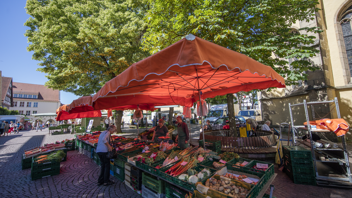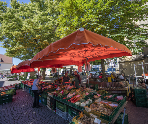 Der Wochenmarkt in Nürtingen ist ein lebendiger Treffpunkt für frische, regionale Produkte. Er bietet eine vielfältige Auswahl an Lebensmitteln, fördert den direkten Kontakt zu Erzeuger innen und bereichert das Stadtleben. Der Wochenmarkt in Nürtingen ist ein fester Bestandteil des städtischen Lebens und ein beliebter Anlaufpunkt für Menschen, die Wert auf Frische, Qualität und Regionalität legen. In zentraler Lage versammelt er regelmäßig Marktbeschicker innen aus der Region und bietet eine breite Auswahl an Lebensmitteln und Produkten des täglichen Bedarfs. Das Angebot reicht von frischem Obst und Gemüse über Backwaren, Käse, Fleisch- und Wurstspezialitäten bis hin zu Blumen, Feinkost und weiteren handwerklich hergestellten Erzeugnissen. Viele der angebotenen Produkte stammen aus regionaler oder saisonaler Erzeugung und zeichnen sich durch ihre Qualität und kurze Transportwege aus. Der direkte Kontakt zu den Anbieter innen schafft Transparenz und Vertrauen und ermöglicht persönliche Beratung. Der Wochenmarkt ist jedoch weit mehr als nur ein Ort des Einkaufs. Er fungiert als sozialer Treffpunkt, an dem Begegnung, Austausch und Gespräche ganz selbstverständlich stattfinden. Menschen unterschiedlicher Generationen kommen hier zusammen, verweilen, tauschen sich aus und erleben ein Stück gelebte Stadtkultur. Diese besondere Atmosphäre trägt zur Belebung der Innenstadt bei und stärkt das Gemeinschaftsgefühl. Mit seinem vielfältigen Angebot und seiner offenen Struktur leistet der Wochenmarkt in Nürtingen einen wichtigen Beitrag zur nachhaltigen Versorgung und zur Förderung regionaler Wirtschaftskreisläufe. Er verbindet Tradition mit zeitgemäßem Konsumverhalten und bereichert das öffentliche Leben der Stadt auf authentische und lebendige Weise.