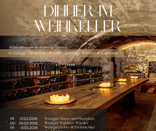 Dinner im Weinkeller Aperitif ab 18:30 , Dinner ab 19 Uhr 6-Gänge Menü inkl. Weinbegleitung von Top Winzern Genauere Infos zum Menü, Reservierung und bei weiteren Fragen erhalten sie unter office@weitmoser.at