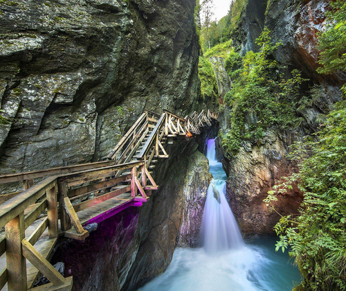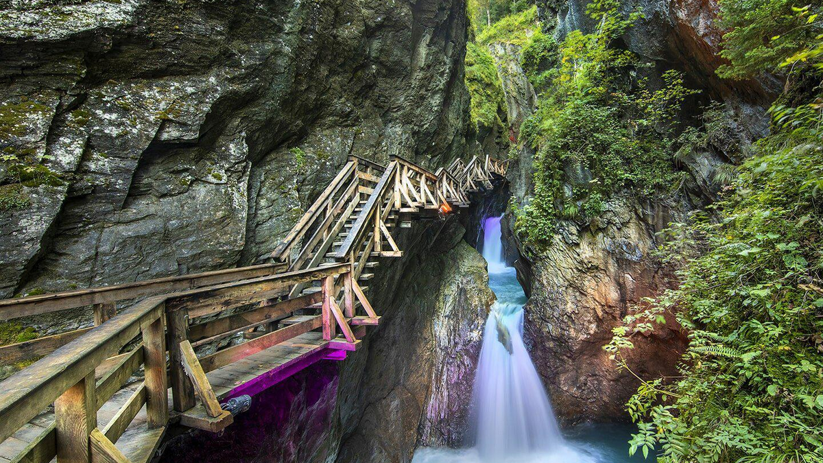 In den Sommermonaten verwandelt sich die Sigmund Thun Klamm bei Kaprun an ausgewählten Abenden in eine faszinierende Lichtlandschaft. Kunstvoll platzierte Beleuchtung taucht Felsen und Wasser in wechselnde Farben und schafft eine einzigartige Atmosphäre, die die Klamm von einer ganz neuen Seite zeigt. Während des Spaziergangs durch die Schlucht treffen tosende Wassermassen auf schroffe Felsformationen, die im Zusammenspiel mit Licht und Schatten besonders eindrucksvoll wirken. Die natürliche Kraft des Wassers und die besondere Inszenierung machen den Weg durch die Klamm zu einem stillen, fast märchenhaften Erlebnis.