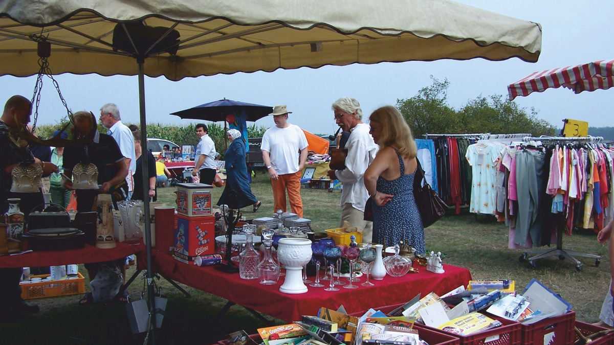 Mit viel Glück findet man hier noch echte Schnäppchen unter dem bunten Gemisch von Büchern, CD’s, Comics, Computerteilen, altem Geschirr, Second-Hand Kleidern und Ü-Eiern. Ab und zu finden sich sogar noch Schätze aus Uroma’s Zeiten – handbestickte Tischdecken, Schmuck, Glas, Porzellan sowie alte Möbel aus längst vergangenen Zeiten wechseln den Besitzer. Aufbau ab 7 Uhr! Trödel: Laufender Meter 5€ Neuware nur mit Anmeldung: Laufender Meter 8€ zzgl. 1€ pro Verkaufsstand. Achtung: Termine bitte immer unter www.marktcom.de überprüfen!