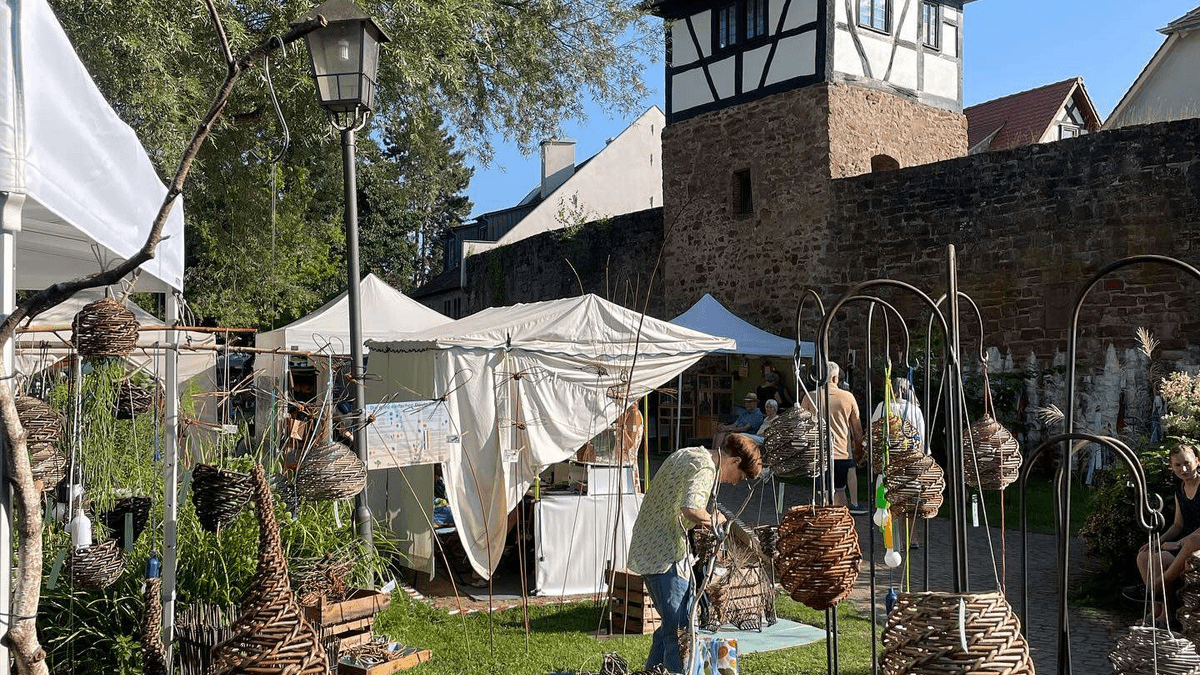 KunstHandwerk Odenwald e.V. präsentiert sich im Stadtgarten von Michelstadt. Am Samstag und Sonntag, 22. und 23. August, ist der Markt kostenfrei und jeweils von 11 bis 18 Uhr geöffnet. Zur Vernissage mit Verkauf am Freitag, 21.08.2026, von 18 bis 21 Uhr ist jeder herzlich eingeladen.