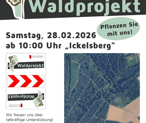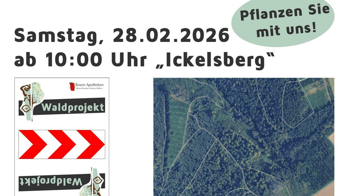 🌳🌱 Pflanzen. Anpacken. Gutes tun! 🌱🌳 Unser Rosen Apotheken Waldprojekt geht in die nächste Runde – und ihr seid herzlich eingeladen! 📅 Samstag, 28.02.2026 ⏰ ab 10:00 Uhr 📍 Ickelsberg Gemeinsam wollen wir junge Bäume pflanzen und damit aktiv etwas für unsere Umwelt tun 💚 Egal ob allein, mit Familie oder Freunden – jede helfende Hand zählt! 👉 Das solltet ihr mitbringen: - festes Schuhwerk 👟 - wetterfeste Kleidung 🧥 - gern einen Spaten (wenn vorhanden) Für eine kleine Stärkung ist gesorgt ☕😊 Die Anfahrt ist ausgeschildert – einfach vorbeikommen und mitmachen! 🌿 Wir freuen uns auf euch – pflanzt mit uns Zukunft! 🌿