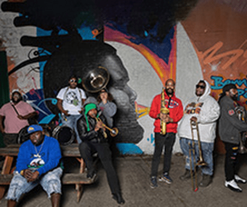 Die Hot 8 Brass Band, die sich auf das traditionelle Jazz-Erbe ihrer Heimatstadt New Orleans beruft, ist dafür bekannt, dass sie Elemente des Funk, Hip-Hop, Rap und dessen lokale Variante, den „Bounce“, in ihre Musik einfließen lässt. Das Kollektiv gewann bei den 64. jährlichen Grammy Awards 2022 für seine Mitwirkung an John Batistes „Album of The Year“, nachdem sie für ihre „The Life & Times Of... " LP für ‘Best Regional Roots Album’ in 2013 nominiert waren.