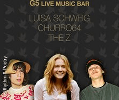 Am Montag, 20. April 2026, gibt es in der G5 Live Music Bar ein Konzert zum Nichtverpassen. Mit der kleinen Hymne „Wiener Tauben“ haben sich CHURRO64 und luisa schweig in die Herzen der FM4-Hoerer:innenschaft gespielt. Jetzt wird es Zeit, ihre Songs live zu erleben. The Z hat schon mit seinem Debüt-Album „Hoffnung pures Gold“ seine Fans überzeugt und wird mit Liveband seine Lieblingssongs praesentieren.