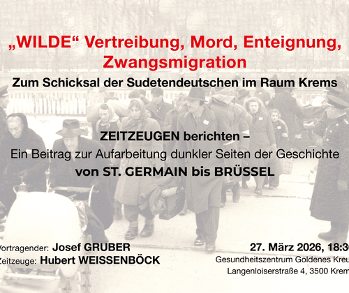 darunter ca. 3 Mill. deutschsprechender Altösterreicher, welche brutalst ermordet, massakriert oder mit nichts vertrieben wurden. Dieses nach dem Völkerrecht widerrechtliche Vorgehen wurde durch die BENESCH- DEKRETE pardoniert , die heute trotz EU Beitritt Tschechiens noch aufrechter Bestand sind. Mit dem Zeitzeugenbericht von Hubert Weissenböck werden diese bis dato straf- und verfolgungsfreien, tabuisierten Grausamkeiten angesprochen, Hubert Weissenböck und Josef Gruber wollen einen Beitrag leisten, diese dunkle Seite der Geschichte aufzuarbeiten.