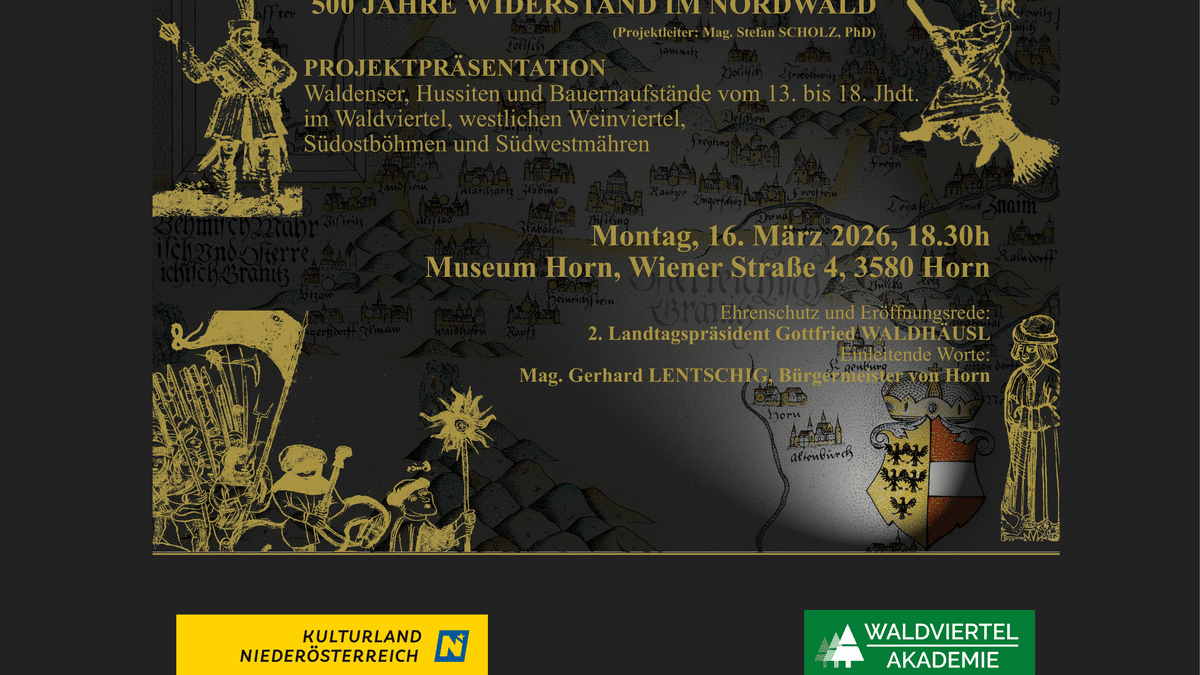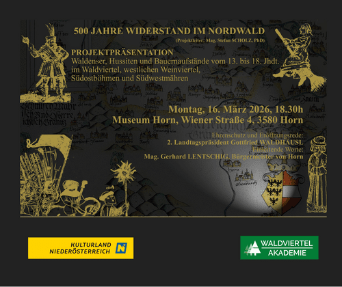 Wie prägten religiöse Reformbewegungen und soziale Unruhen das Waldviertel, Böhmen und Mähren? Dr. Stefan Scholz, Archivar am Staatsgebietsarchiv Prag und renommierter Forscher zur Geschichte der Waldenser und Hussiten, lädt Sie ein zu einer faszinierenden Reise in die bewegte Vergangenheit unserer Region.