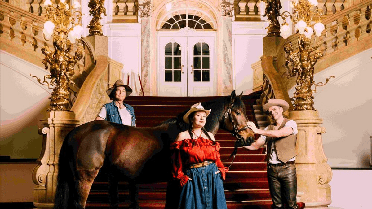Es sollte Kálmáns letzte Operette werden, die nach seinem Tod auf Betreiben seines Sohnes Charles vollendet wurde. Für die Oper Graz setzen Regisseur Christian Thausing und Choreographin Evamaria Mayer, die hier 2020 mit großem Erfolg Anatevka auf die Bühne brachten, die singenden Cowboys und -girls in Szene. Am Pult steht Kai Tietje, der die Operette in konzertanter Form bereits 2014 als Wiederentdeckung an der Komischen Oper Berlin dirigierte und dem hiesigen Publikum von Tom Sawyer (2023/24) und Roxy und ihr Wunderteam (2024/25) bekannt ist.