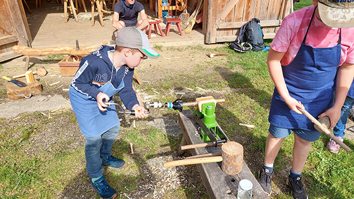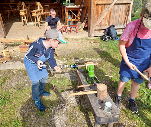 Wir durchqueren den Naturpark und erkunden, wie die vielfältige Kulturlandschaft entstand und wer sie gestaltete. In der Vergangenheit waren intakte Waldränder mit Hasel und Birke bedeutende Materiallieferanten für das alte Handwerk am Hof. Wir lernen, was aus den verschiedenen Gehölzen hergestellt wurde, und üben uns in traditionellen Arbeitstechniken wie der Haselbearbeitung auf der Hoanzl-Goaß.