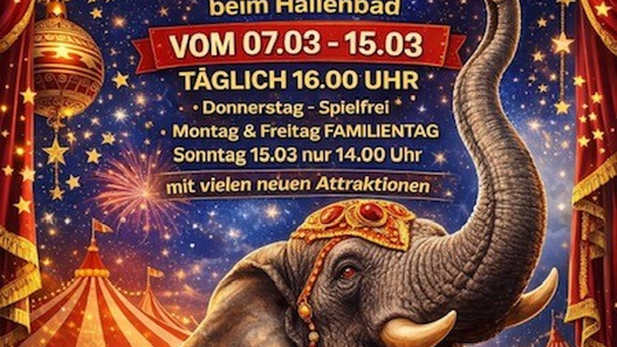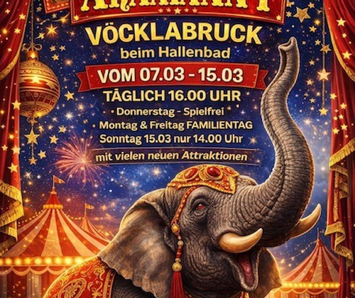Der Frühlingszirkus gastiert von 7. bis 15. März am Freizeitgelände Vöcklabruck. Die Vorstellungen beginnen täglich um 16 Uhr, Donnerstag ist spielfrei. Montag und Freitag gelten als Familientage mit vergünstigten Eintrittspreise. Am Sonntag, 15. März, startet die finale Vorstellung bereits um 14: Uhr.
