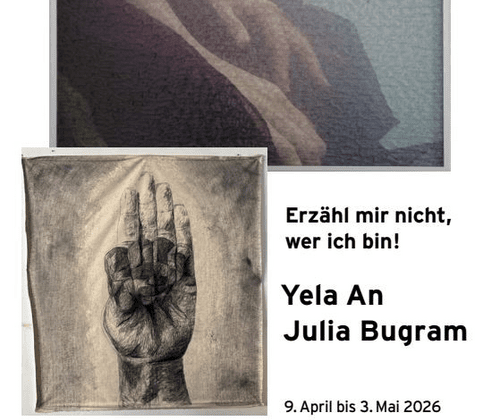 Die Ausstellungsbrücke im Landhaus St. Pölten präsentiert von 9. April bis 3. Mai 2026 Werke von Yela An und Julia Bugram. Die Duo-Ausstellung von Yela An und Julia Bugram mit dem Titel „Erzähl mir nicht, wer ich bin!“ stellt festgeschriebene Vorstellungen von Identität und Zuschreibungen von außen infrage. Zur Eröffnung der Ausstellung spricht die Kunsthistorikerin Paula Marschalek.