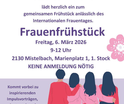 Am Freitag, dem 6. März 2026, lädt Frauen für Frauen in Mistelbach zu einem offenen Frauenfrühstück ein.