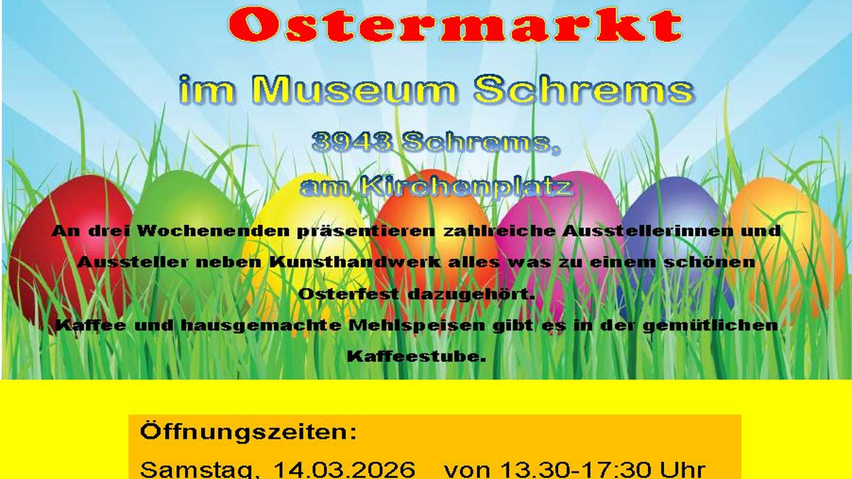 An drei Wochenenden präsentieren zahlreiche Ausstellerinnen und Aussteller neben Kunsthandwerk alles, was zu einem schönen Osterfest dazugehört- Kaffee und hausgemachte Mehlspeisen gibt es in der gemütlichen Kaffeestube.
