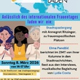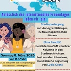 14:00–17:00 UhrAb 14:00 Uhr findet ein Stadtspaziergang mit Annegret Ritzinger zu frauenspezifischen Plätzen statt.