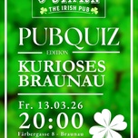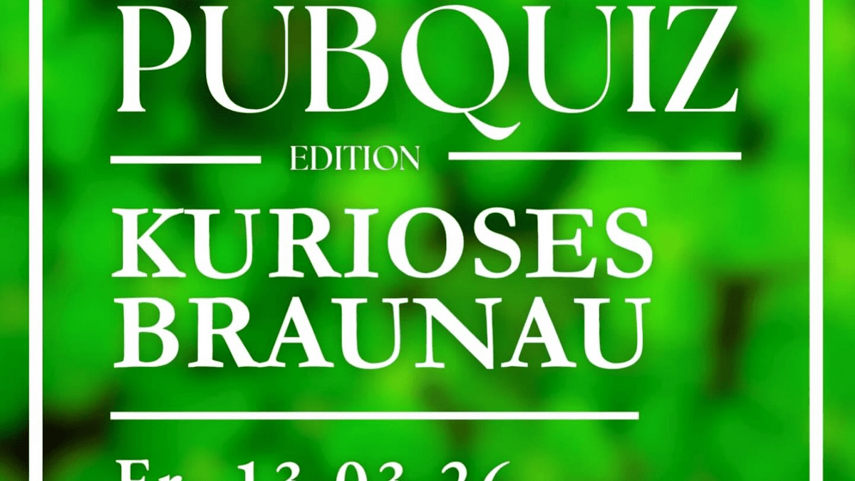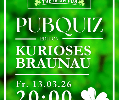 Freitag, 13. März 2026 ab 20:00 UhrBraunau kann mehr, als man denkt – und genau das wird kurios, lustig und überraschend! Stellt euer Wissen (und euren Humor) auf die Probe bei unserem Pubquiz rundum skurrile Fakten, schräge Geschichten und unerwartete Fragen aus Braunau & Umgebung.Euch erwarten: