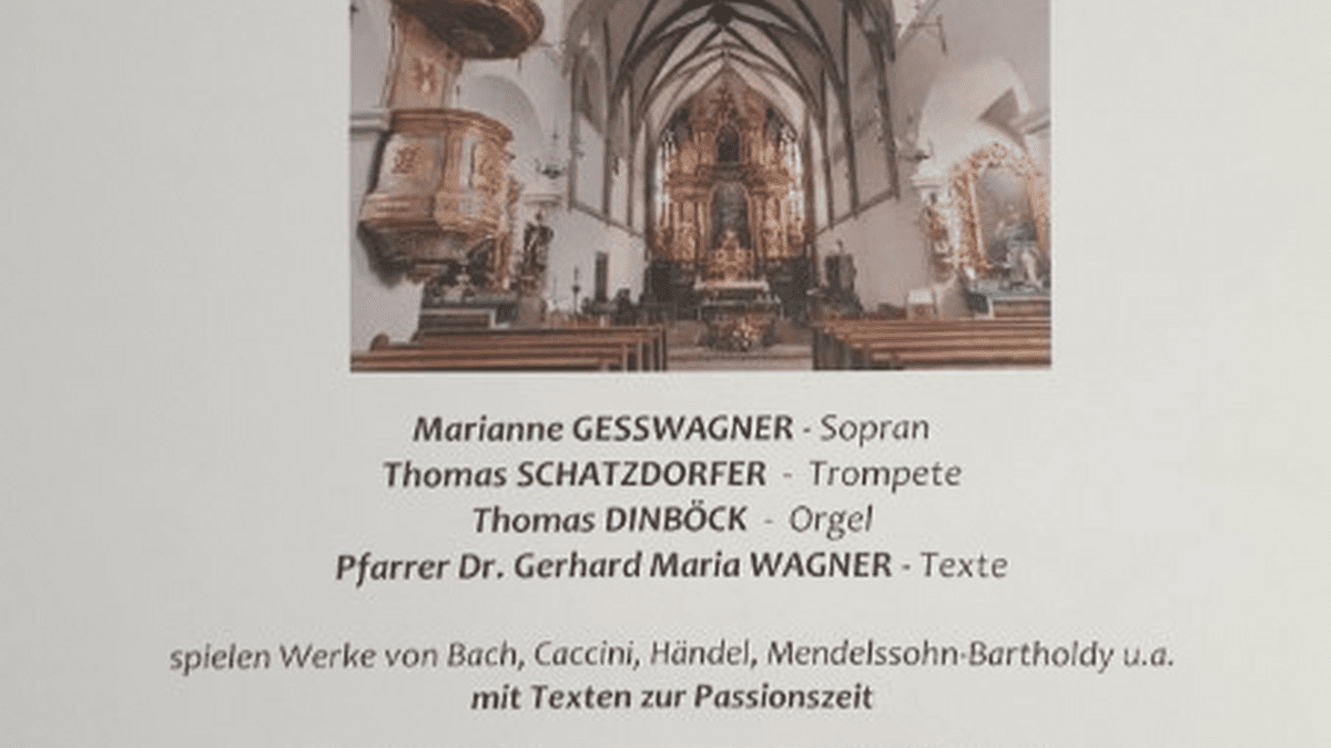 Sopran - Marianne GesswagnerTrompete - Thomas SchatzdorferOrgel - Thomas DinböckTexte - Pfarrer Dr. Gerhard Maria WagnerDer Eintritt ist frei - freiwillige Spenden sind erbeten!